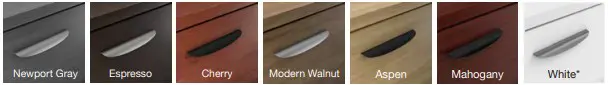| Work Surface Color | Aged Oak, Dove Oak, Newport Gray, Modern Walnut, White, Espresso, Mahogany, Aspen, Cherry, American Elm, Arcadia White, Maple, Coastal Gray |