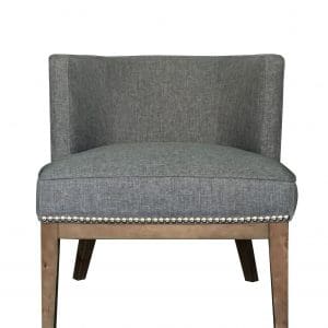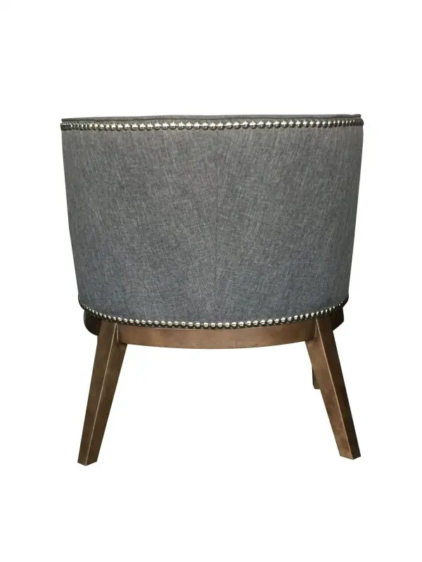 This fashionable medium gray linen guest chair with silver nail head trim works as a reception chair or an accent chair beautifying the modern office. The seat on this curved tub-style guest chair is generously proportioned featuring roomy, heavily-padded seat supported by a spring suspension for a soft, durable sitting experience. Don't be fooled, despite it's retro-modern design, this curvy office guest chair is deceivingly comfortable. You'll be surprised how rugged the solid, curved wood frame feels as it is warranted to support up to 275 lbs. The guest chairs curved, modern walnut solid-rim wood frame design will beautify any office.