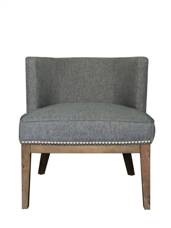 Guest Chair Medium Gray Linen Silver Nail Head Trim Modern Walnut Wood Frame