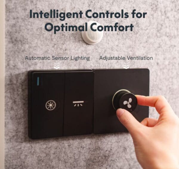 Designed for comfort, the booth includes an air circulating volume of 141m³/h, refreshing the air 21 times per hour to maintain a fresh and breathable environment. The integrated lighting setup includes: